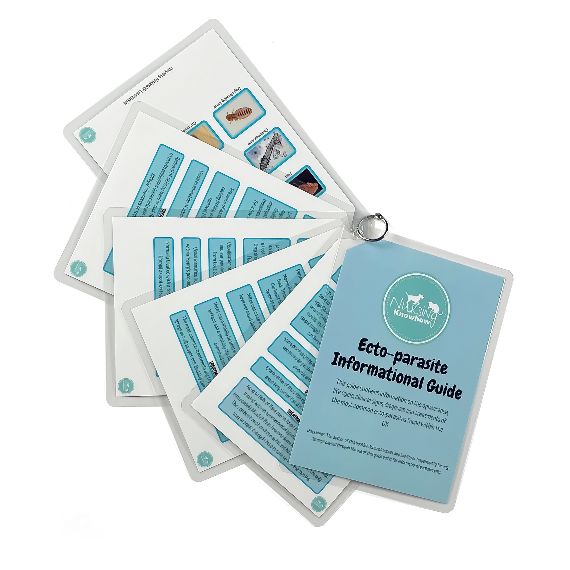 Informational physical guide for veterinary professionals on the common ecto-parasites with images, descriptions, life-cycles, diagnosis and general treatments!