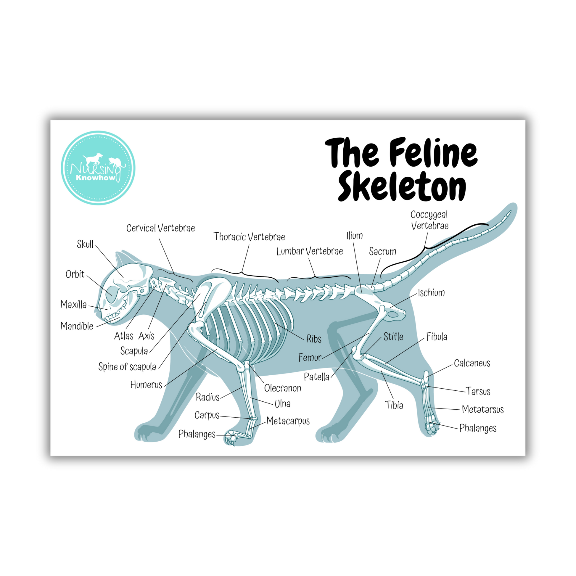 The Skeleton Poster. Thick 350gsm card with a matt lamination cover. Ideal for hanging up in a veterinary practice or your bedroom for revision!